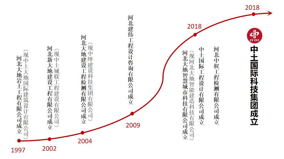 中土國際科技集團有限公司成立于2018年10月,下設七家控股子公司,分別為:中土大地國際建筑設計有限公司、中土城聯工程建設有限公司、河北建偉工程設計咨詢有限公司、中繹建設科技集團有限公司、中土國際工程設計有限公司、河北大地智能建造科技有限公司、河北中權工程檢測有限公司。